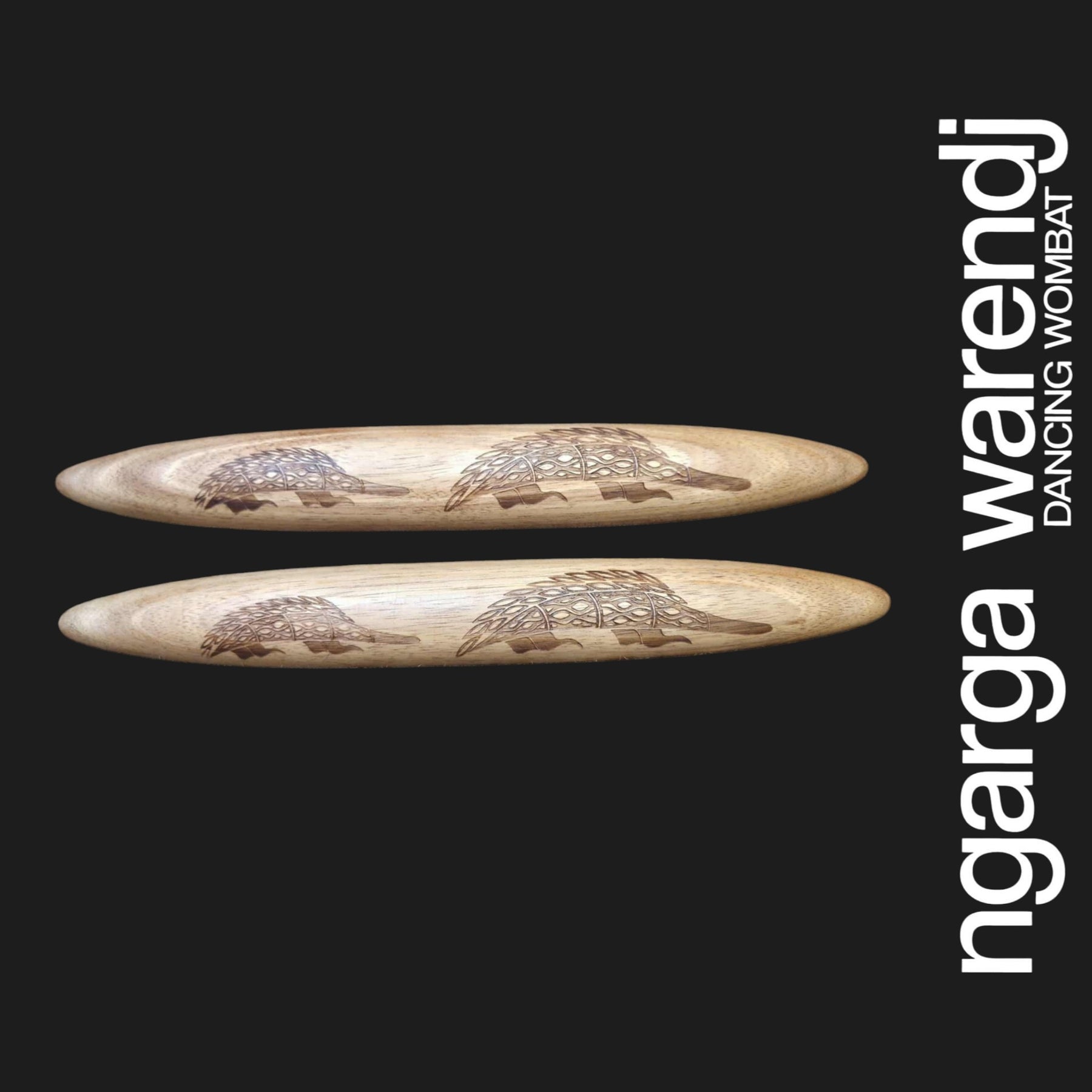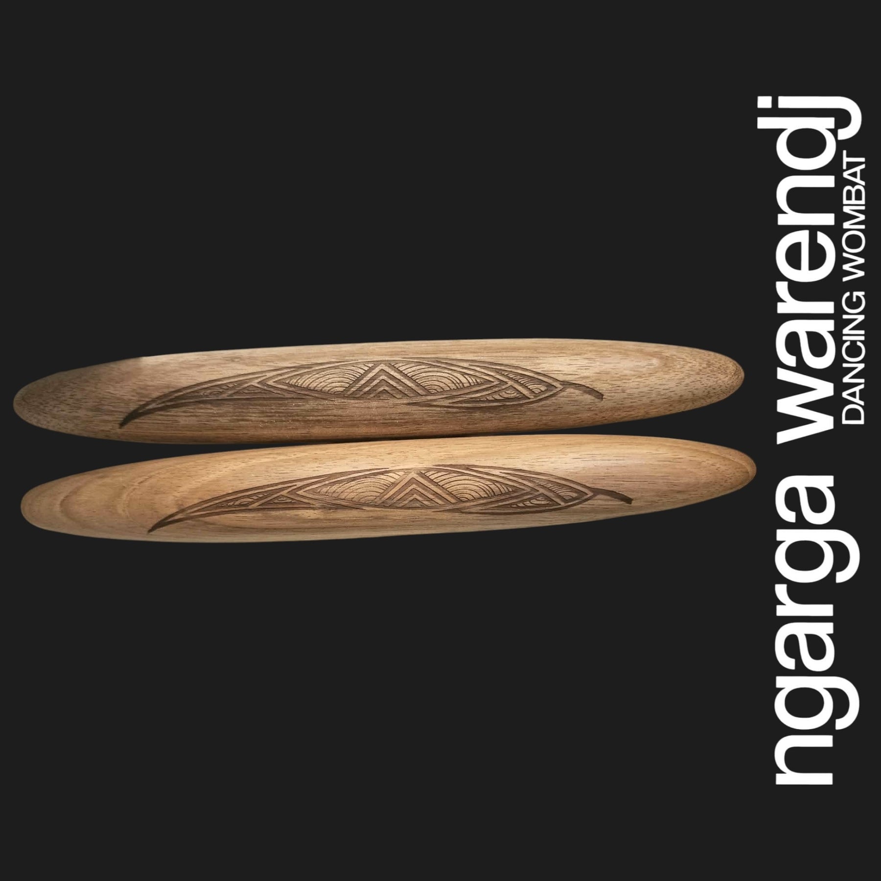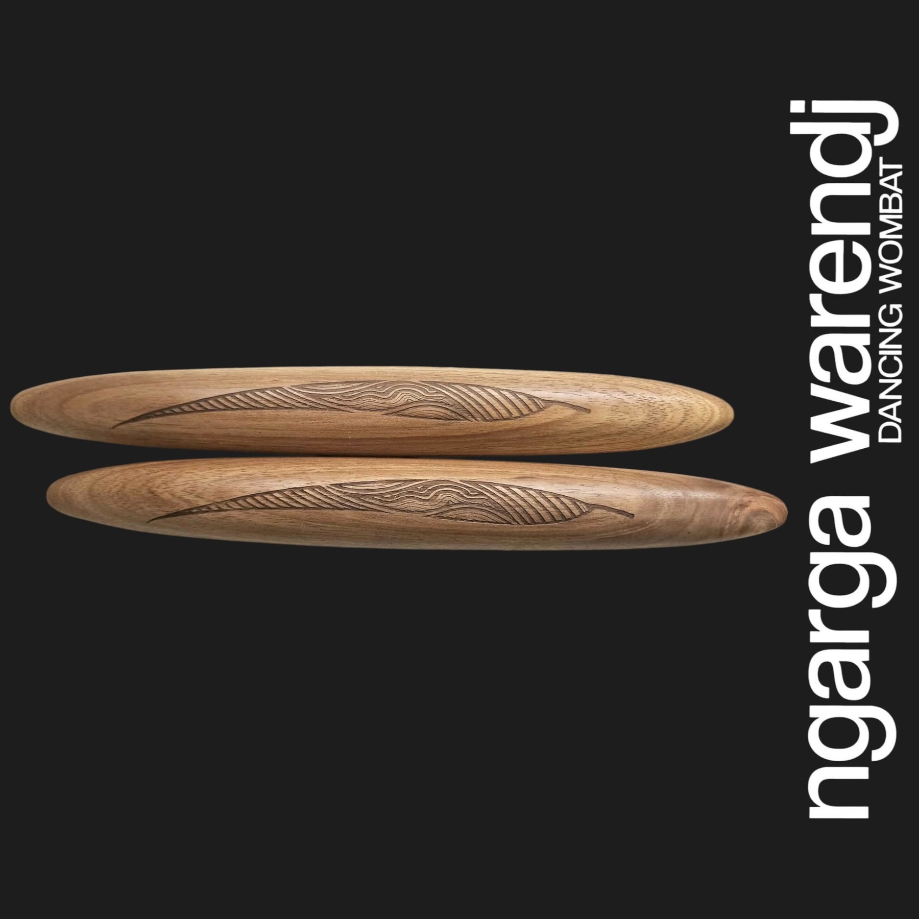 Our Clapsticks, known as Dhaal Galk in Taungwurrung Language, are adorned with a unique Ngarga Warendj Design by Mick Harding. Our designs include gum leaves with linework inspired by the designs of our Ancestors. Each set comes with a card containing detailed information on the artefact, its design, and the artist behind it. Crafted from Tasmanian Blackwood, these music sticks are proudly made in Australia.