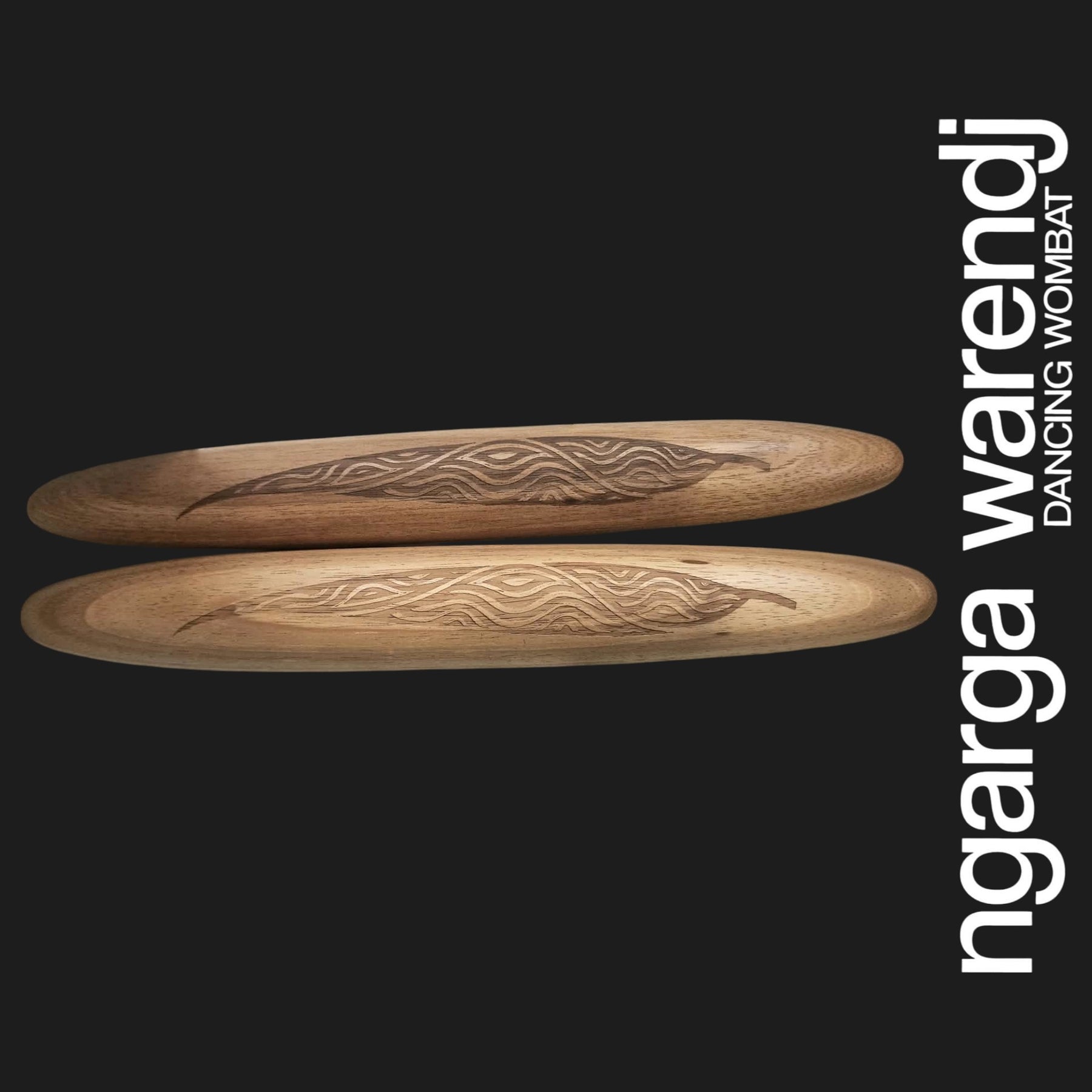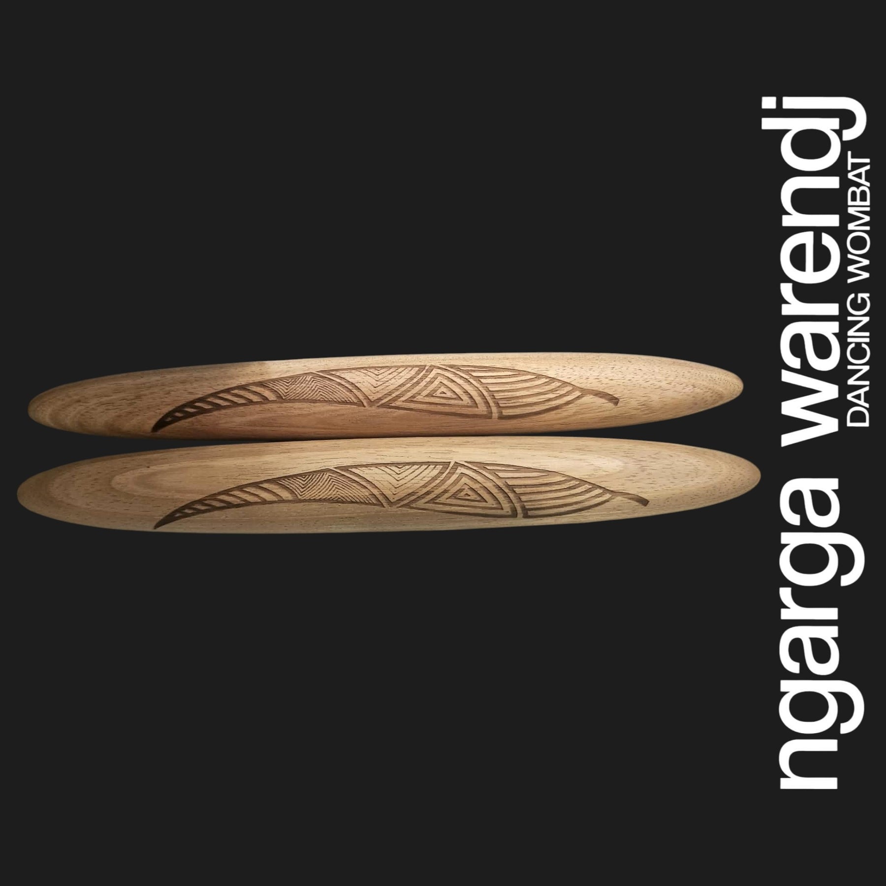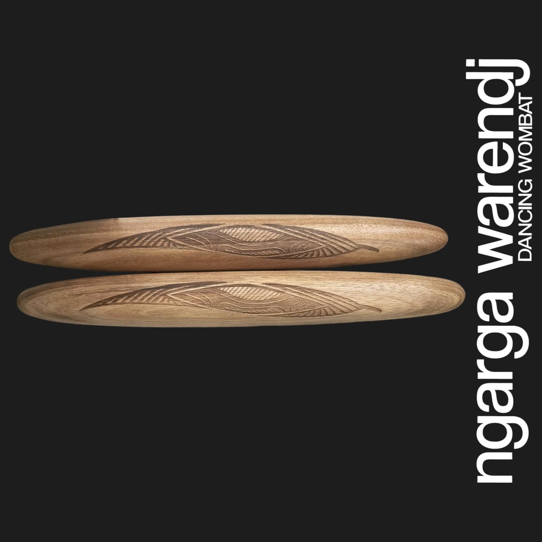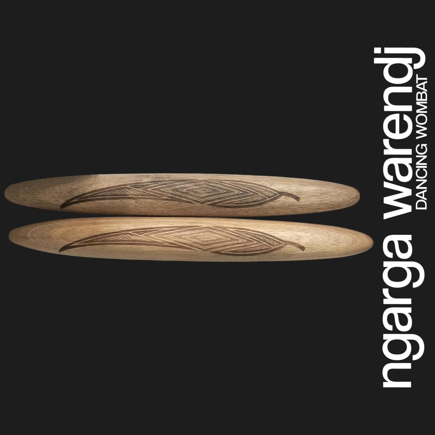 Our Clapsticks, known as Dhaal Galk in Taungwurrung Language, are adorned with a unique Ngarga Warendj Design by Mick Harding. Our designs include gum leaves with linework inspired by the designs of our Ancestors. Each set comes with a card containing detailed information on the artefact, its design, and the artist behind it. Crafted from Tasmanian Blackwood, these music sticks are proudly made in Australia.
