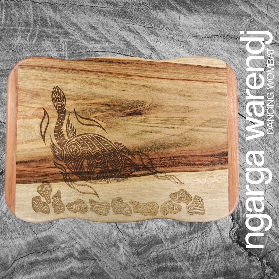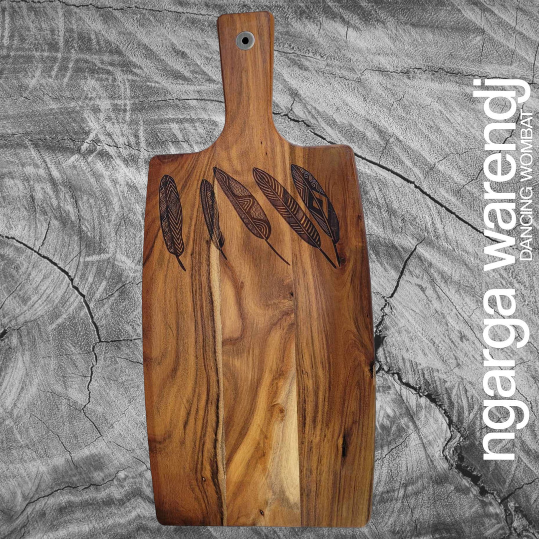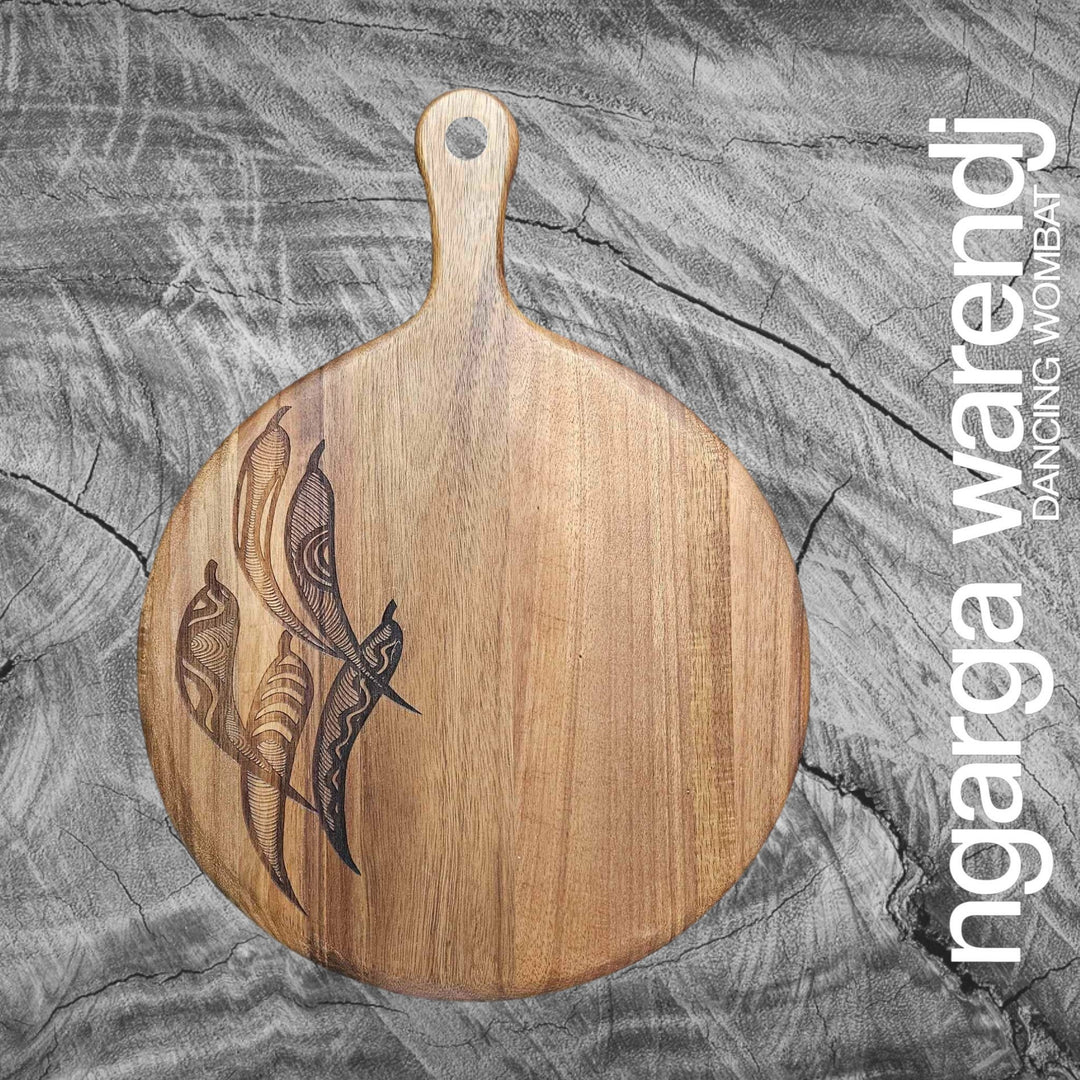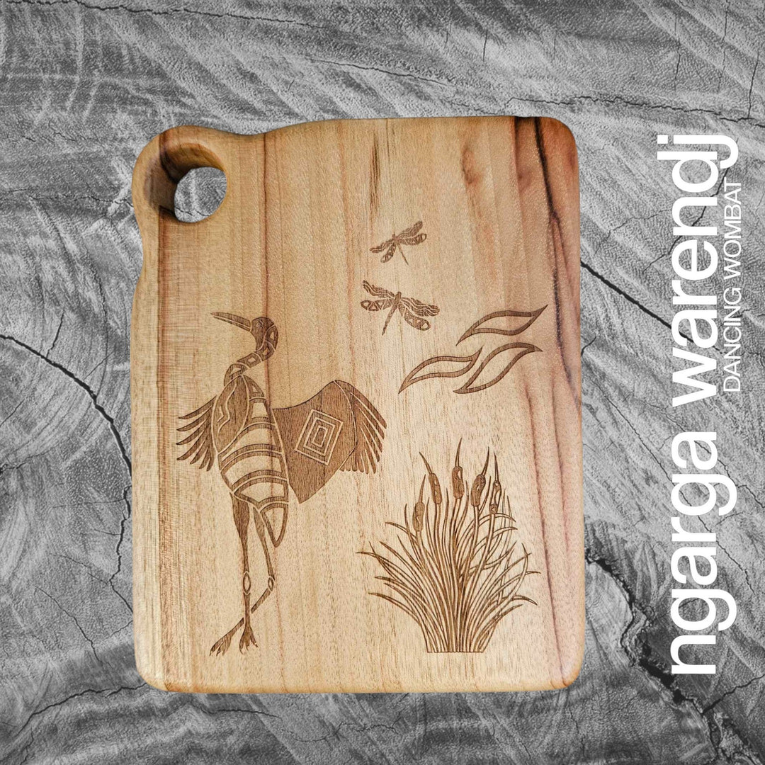 Ngarga Warendj are known for high-quality products that are created by hand or through ethical licensing agreements, so each piece comes with a card that gives the personalised story of the artist and design. Indigenous art in Victoria uses unique symbolism, which is featured on our homewares. We only use high quality and native timbers to produce our range.
