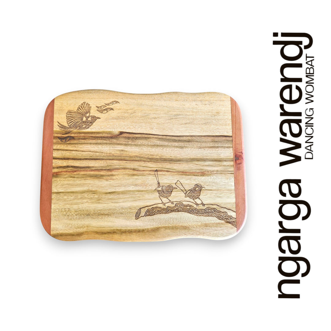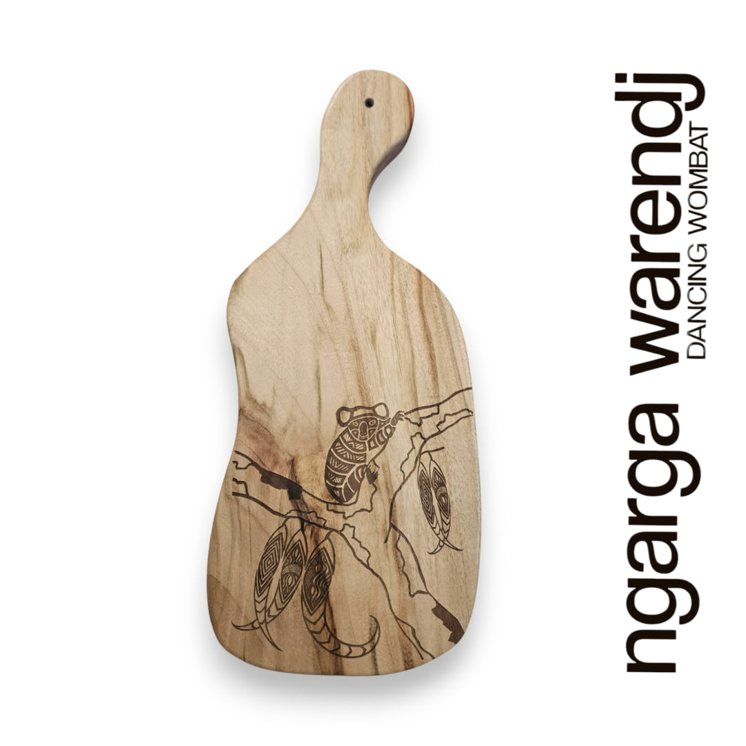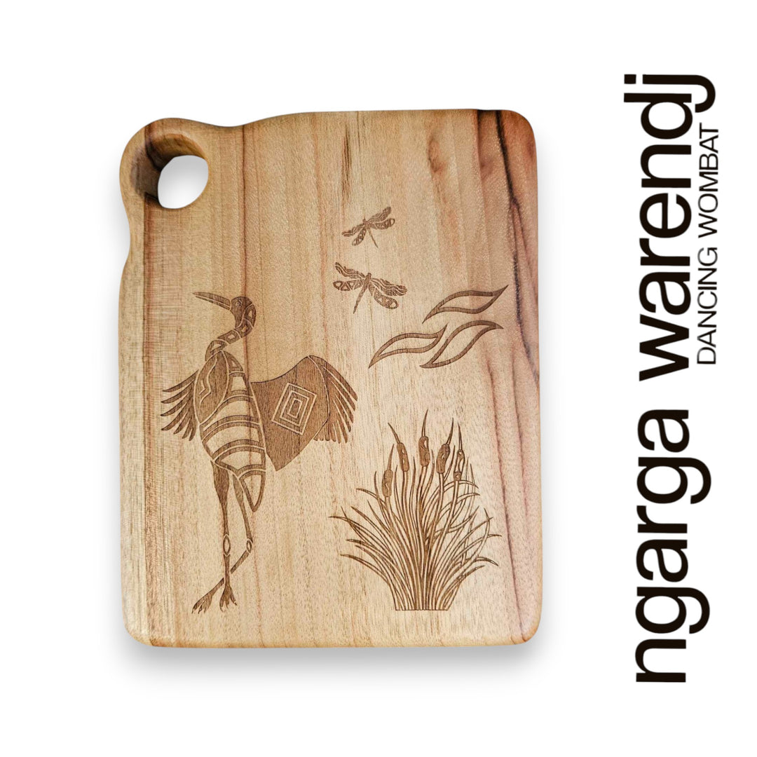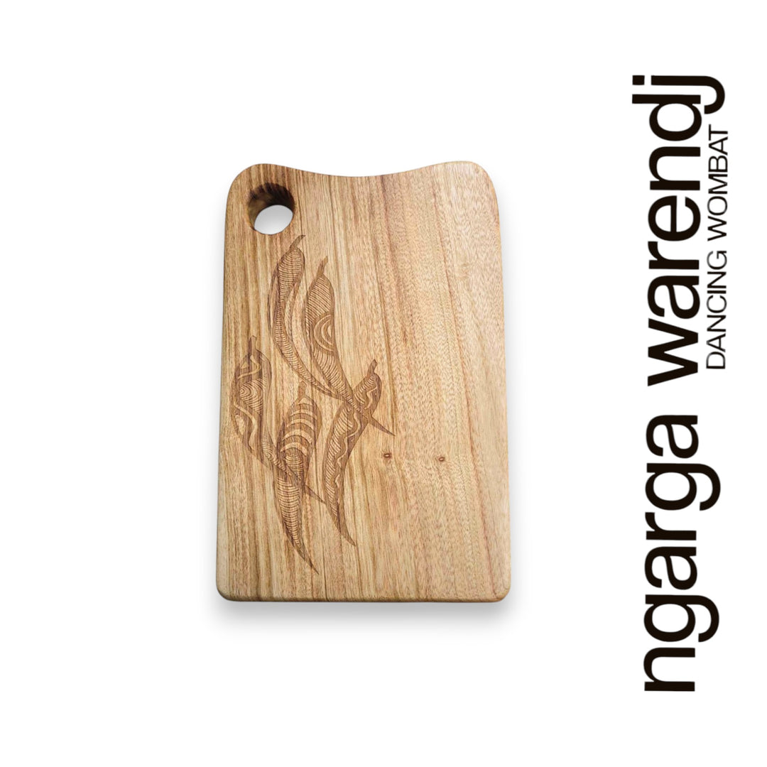 Ngarga Warendj are known for high-quality products that are created by hand or through ethical licensing agreements, so each piece comes with a card that gives the personalised story of the artist and design. Indigenous art in Victoria uses unique symbolism, which is featured on our homewares. We only use high quality and native timbers to produce our range.