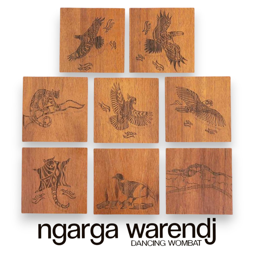 Ngarga Warendj Creator Story Series Square Coasters Set of 8 - Assorted Timber