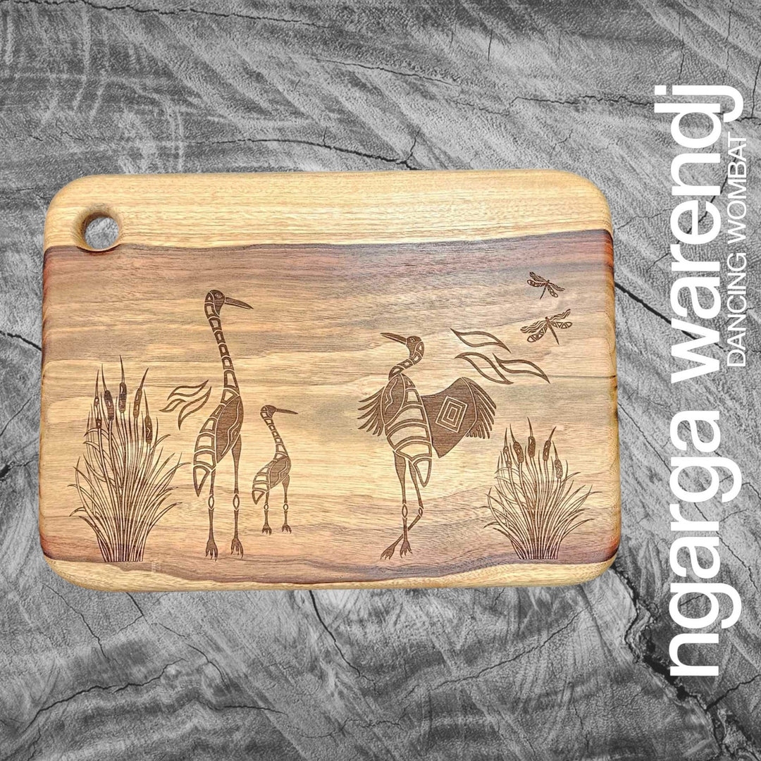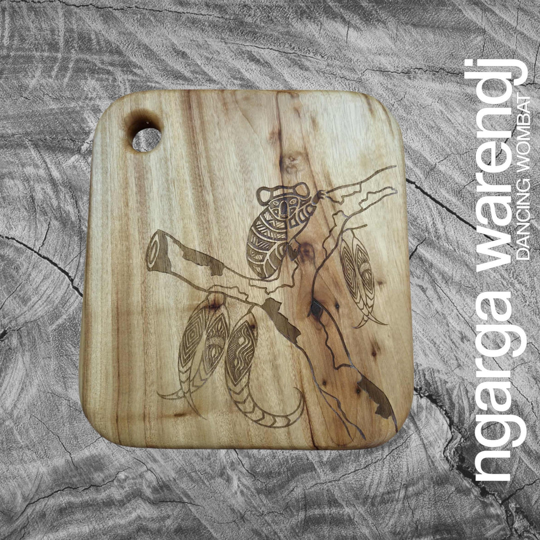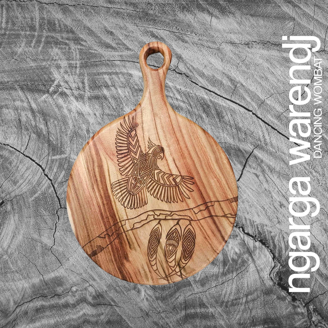 Ngarga Warendj are known for high-quality products that are created by hand or through ethical licensing agreements, so each piece comes with a card that gives the personalised story of the artist and design. Indigenous art in Victoria uses unique symbolism, which is featured on our homewares. We only use high quality and native timbers to produce our range.